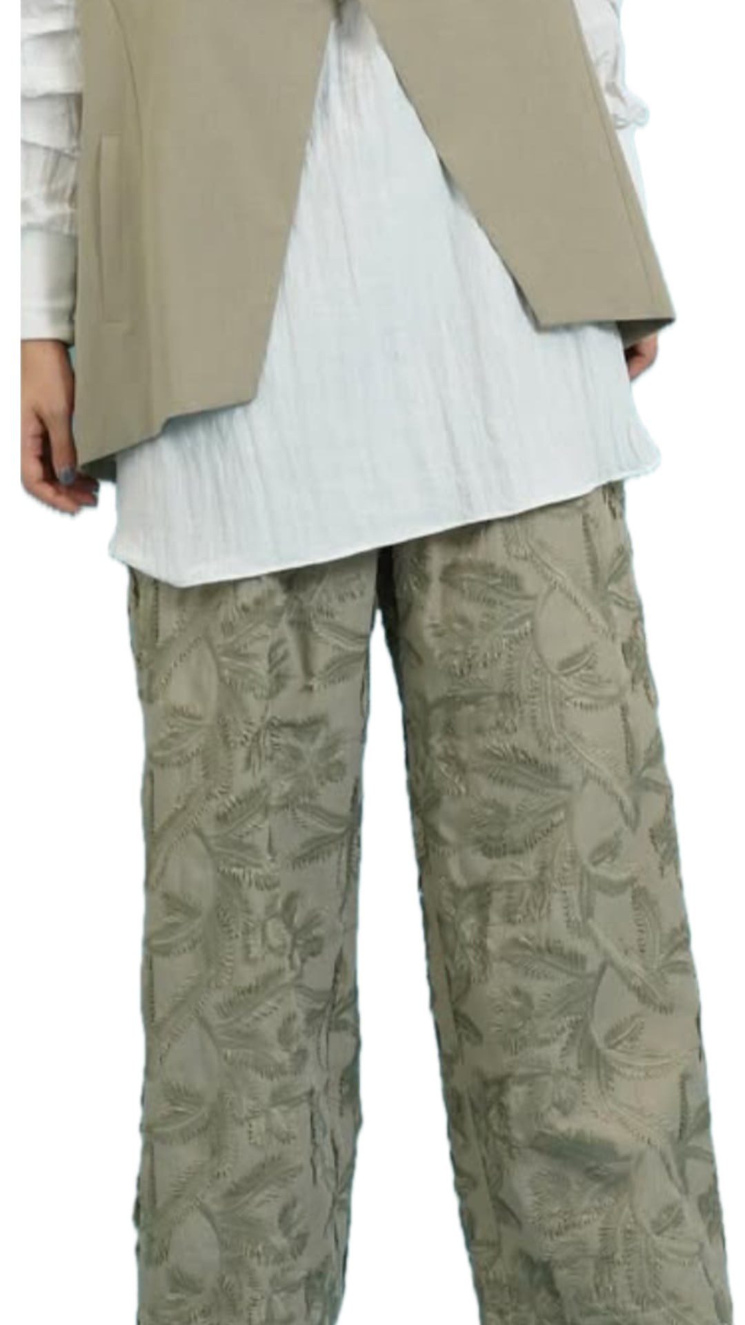 <送料無料>【シアントーキョー/CYAN tokyo】ボタニカル刺繍ワイドパンツ(510320)/ライトカーキ