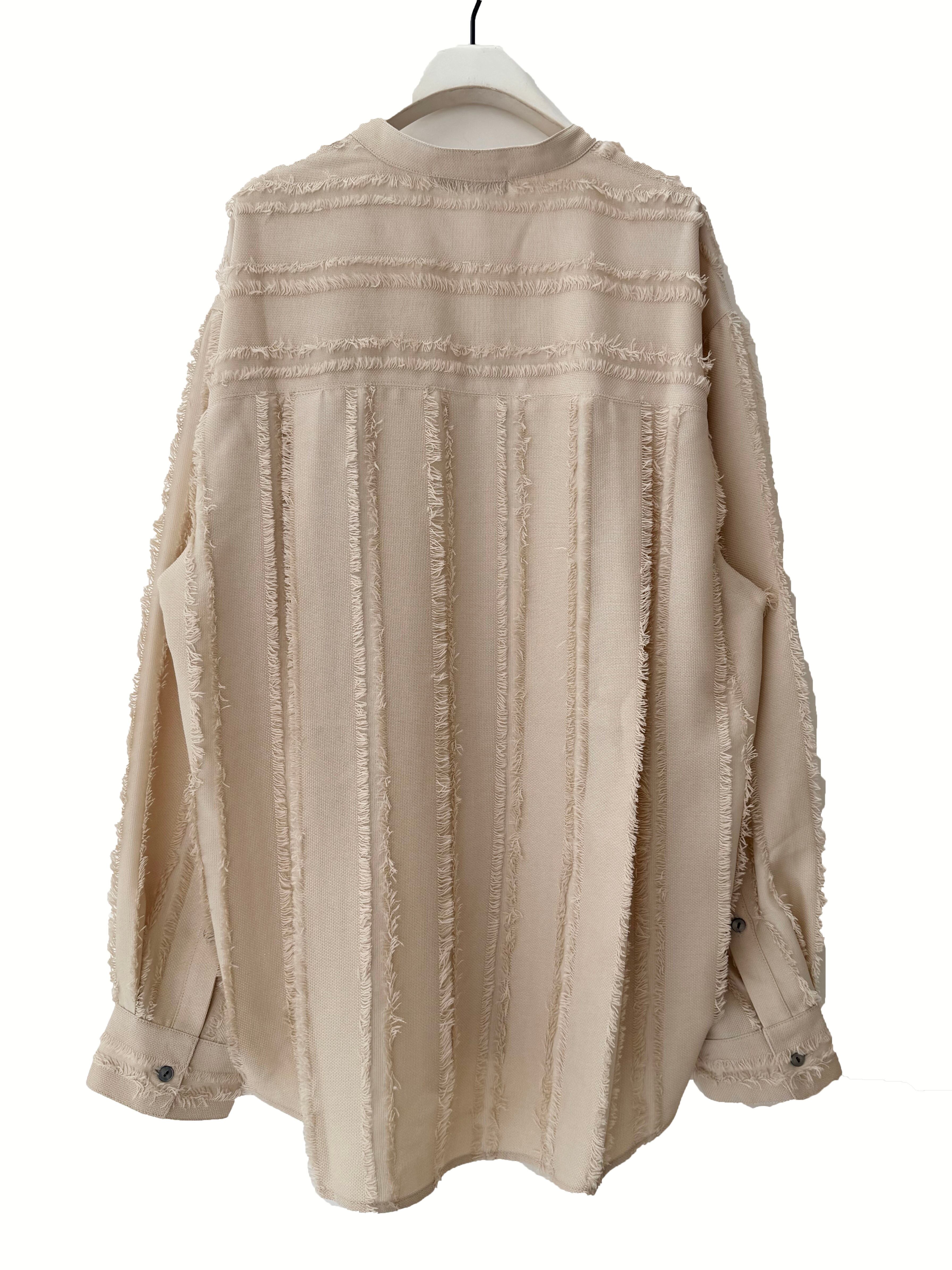 ほどよくゆとりのあるサイズ感のバンドカラーシャツです。