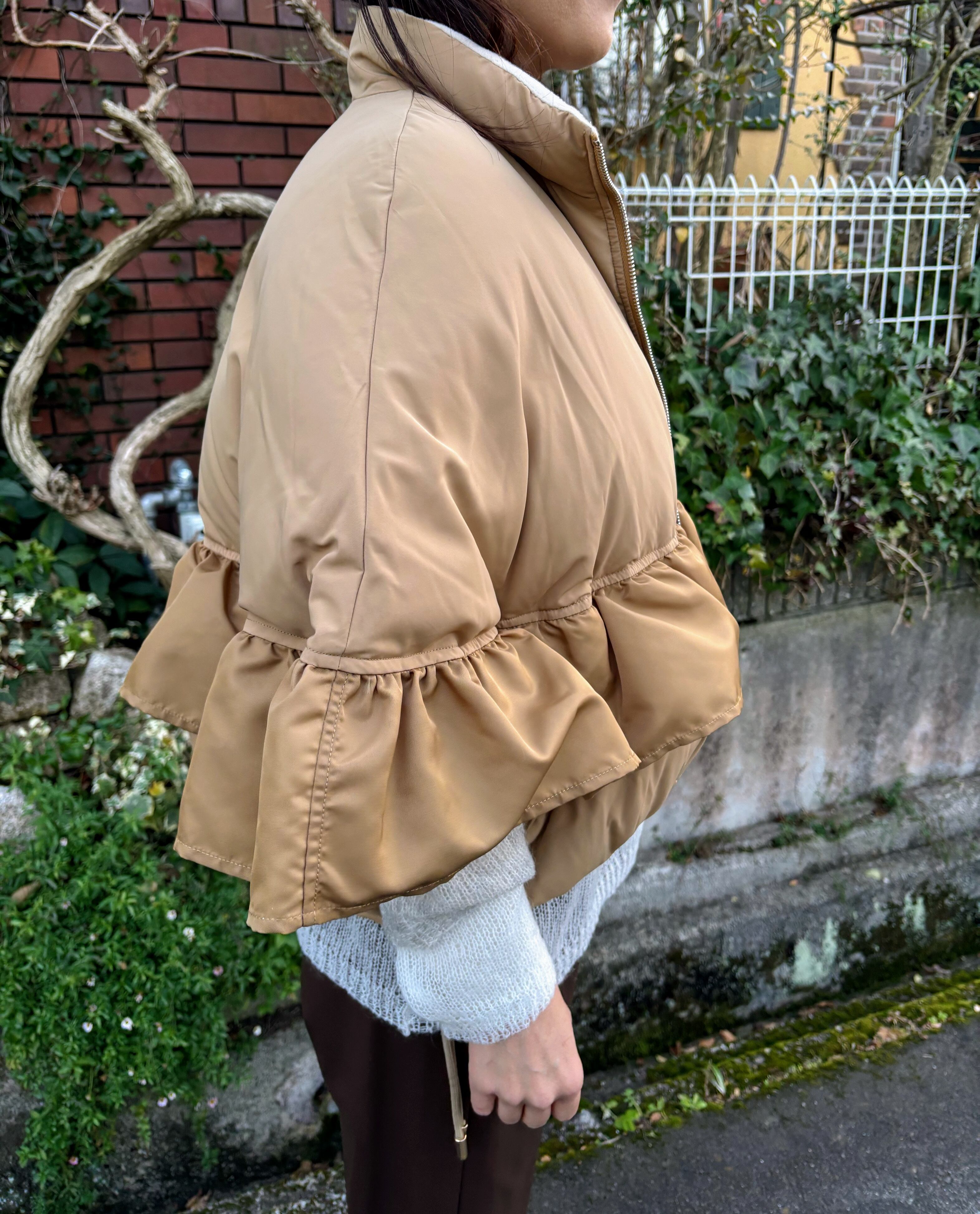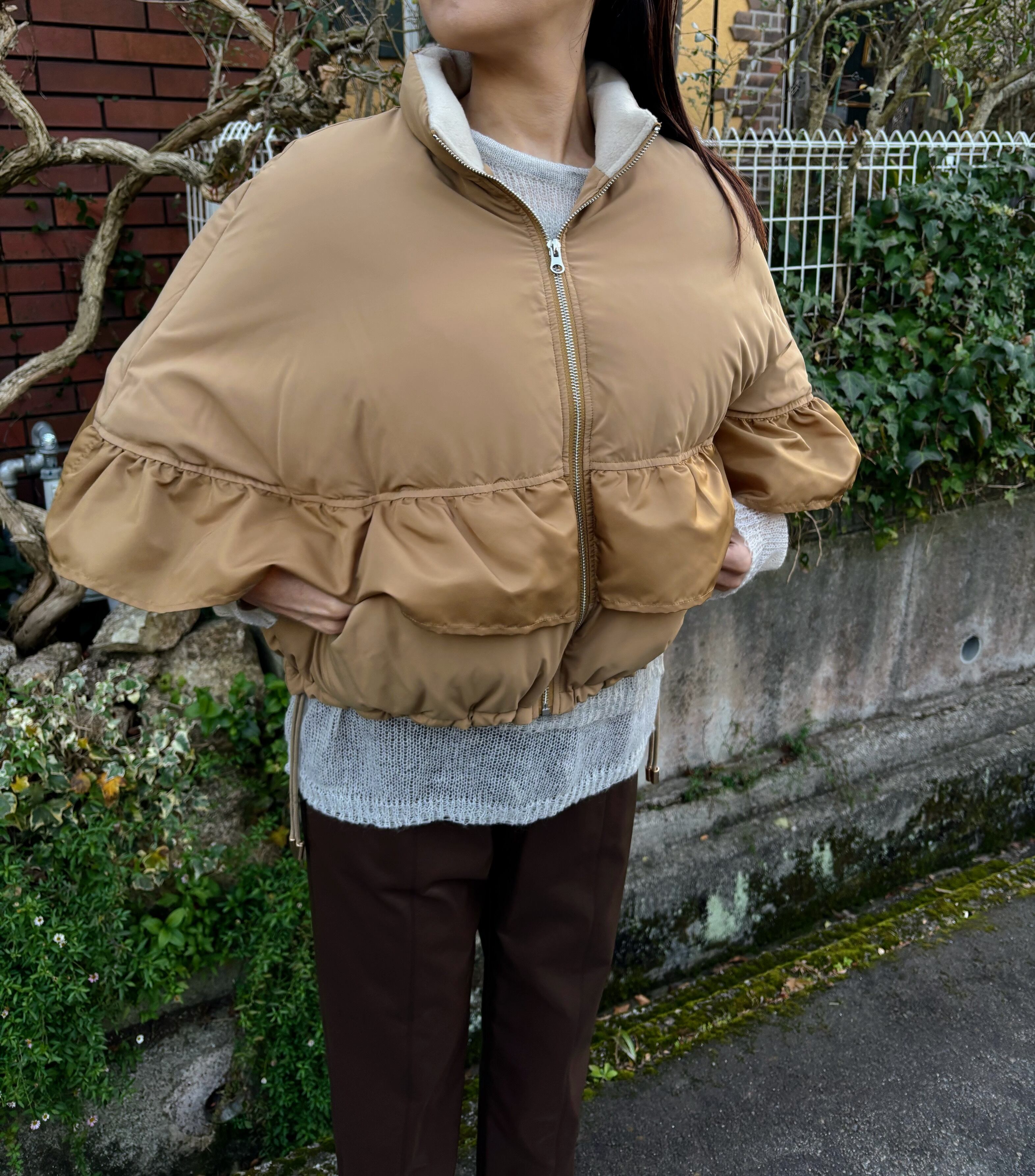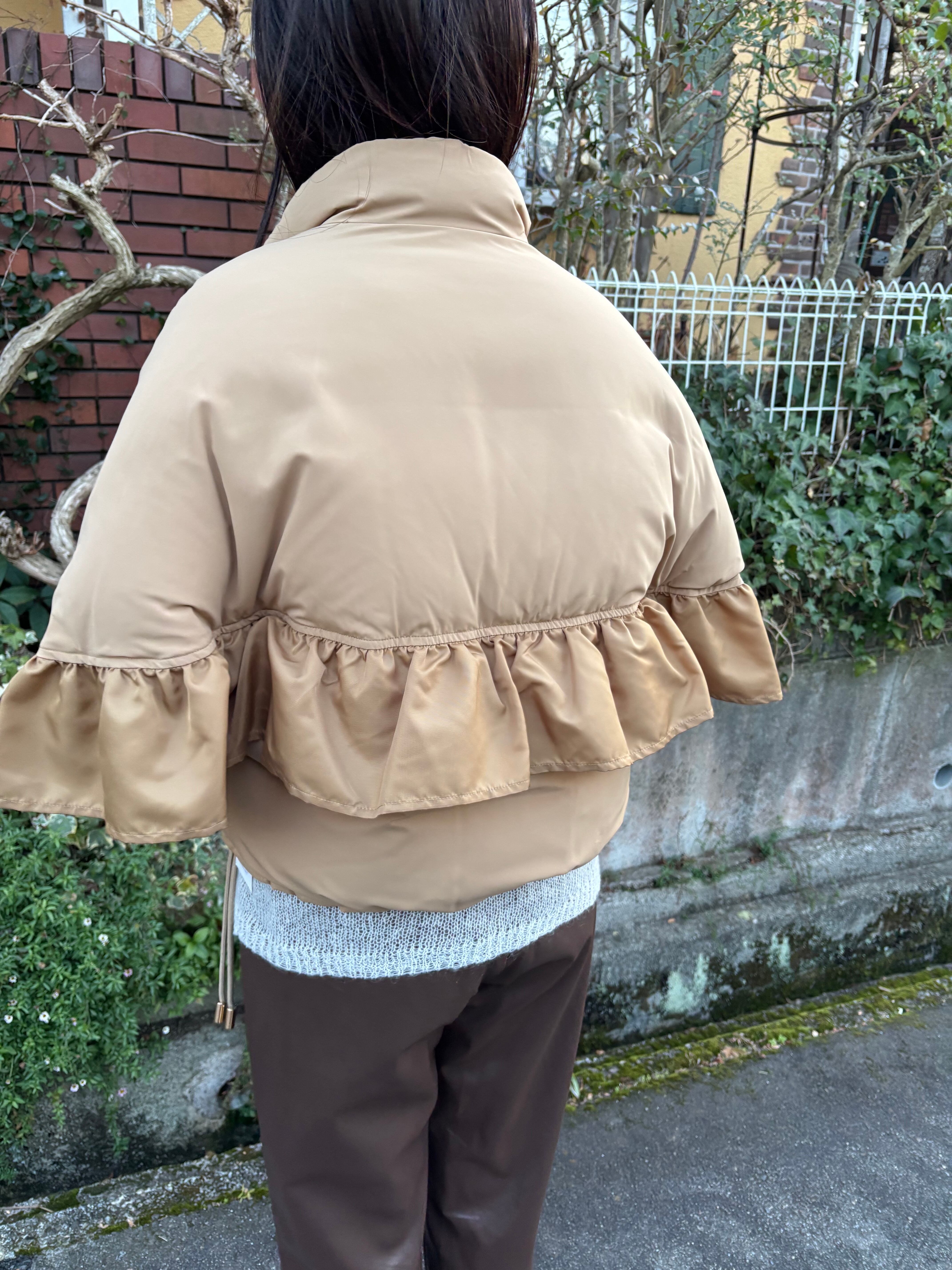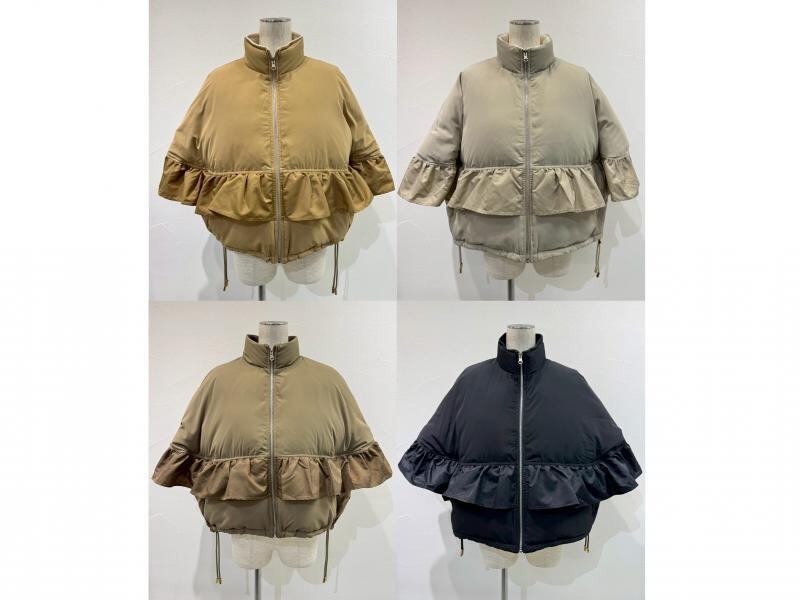 フリルデザインが特徴で、ラグジュアリーな雰囲気を醸し出しつつ、カジュアルスタイルにもマッチするアウターです。 詰め物は、ダウン80%フェザー20%の高機能!軽量であたたかい、見た目でも機能でもヘビロテしちゃうアウターです!