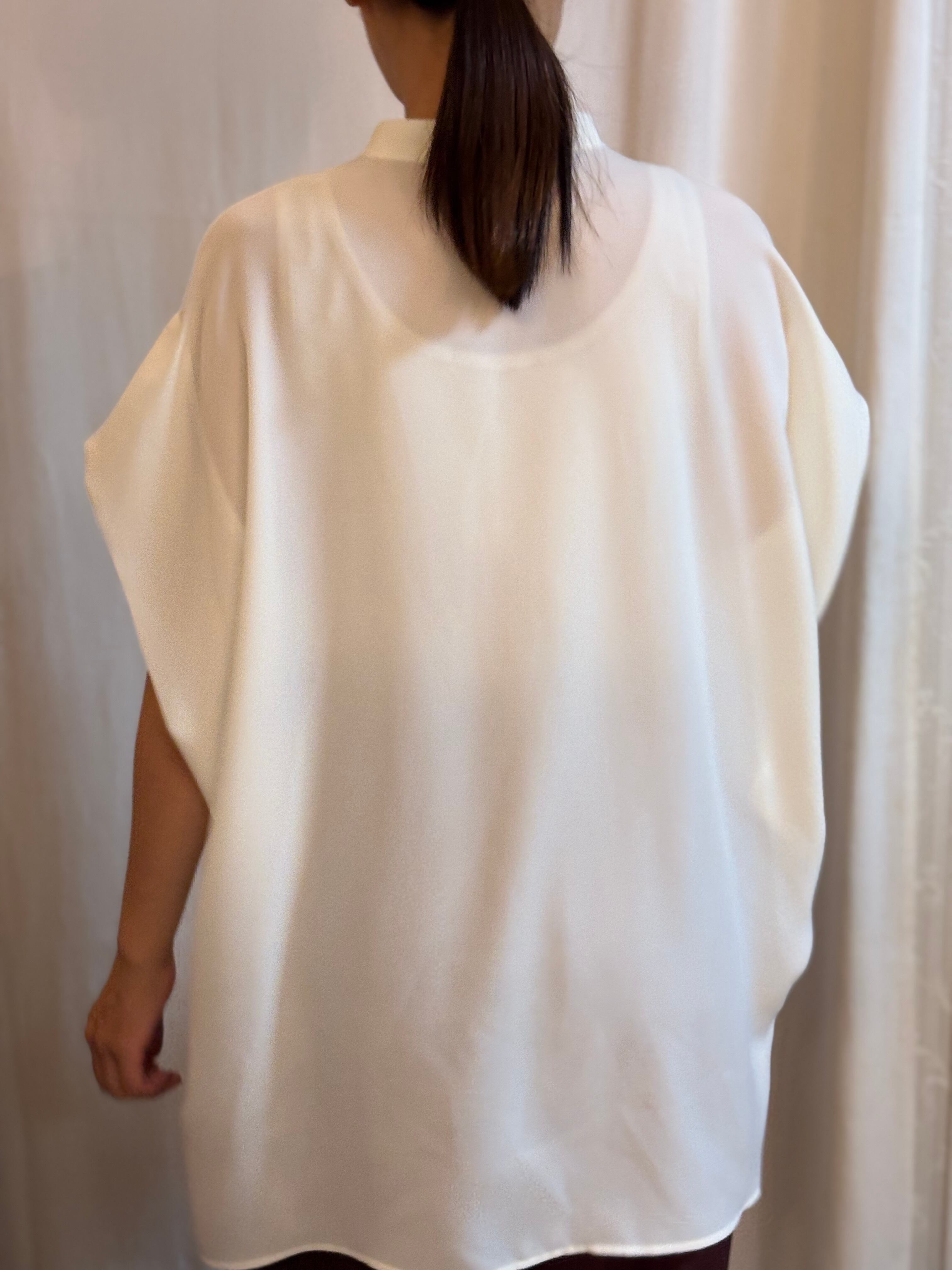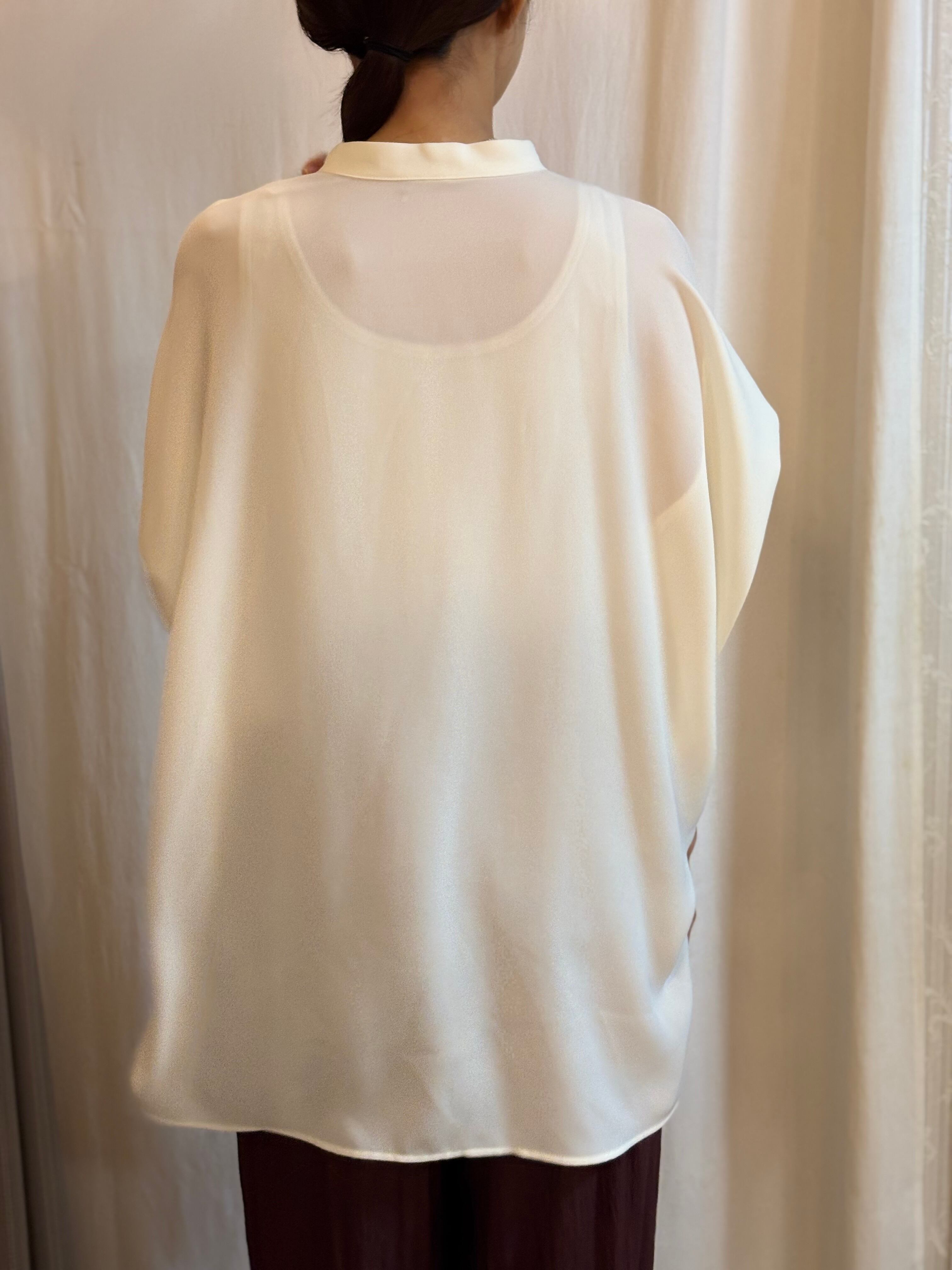 軽やかなポリエステル100%の生地を使用しており、さらりとした肌触りが魅力です。デザインはシンプルながら、そのシルエットはエレガントで、さまざまなシーンにフィットします。フレンチスリーブは肩を優しく包み込み、腕をスッキリ見せる効果があります。