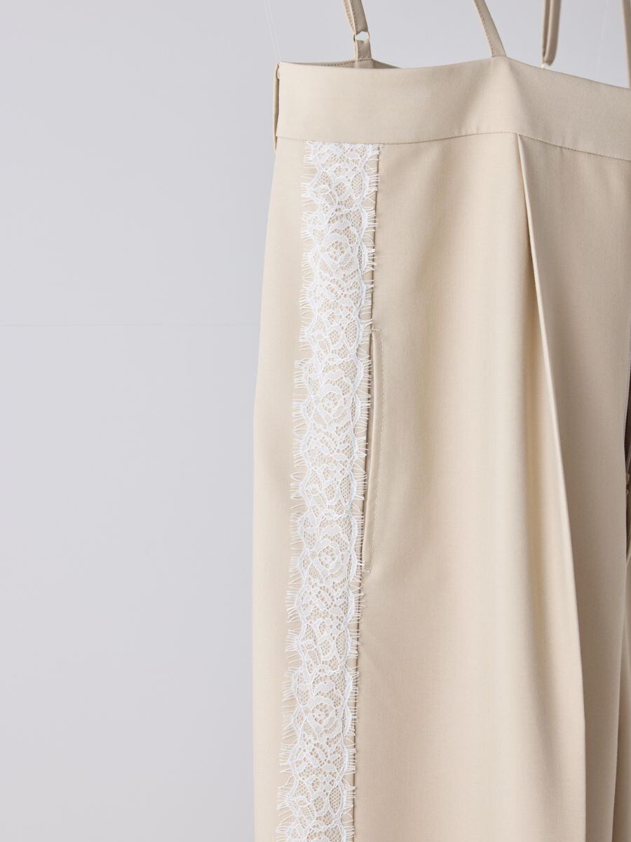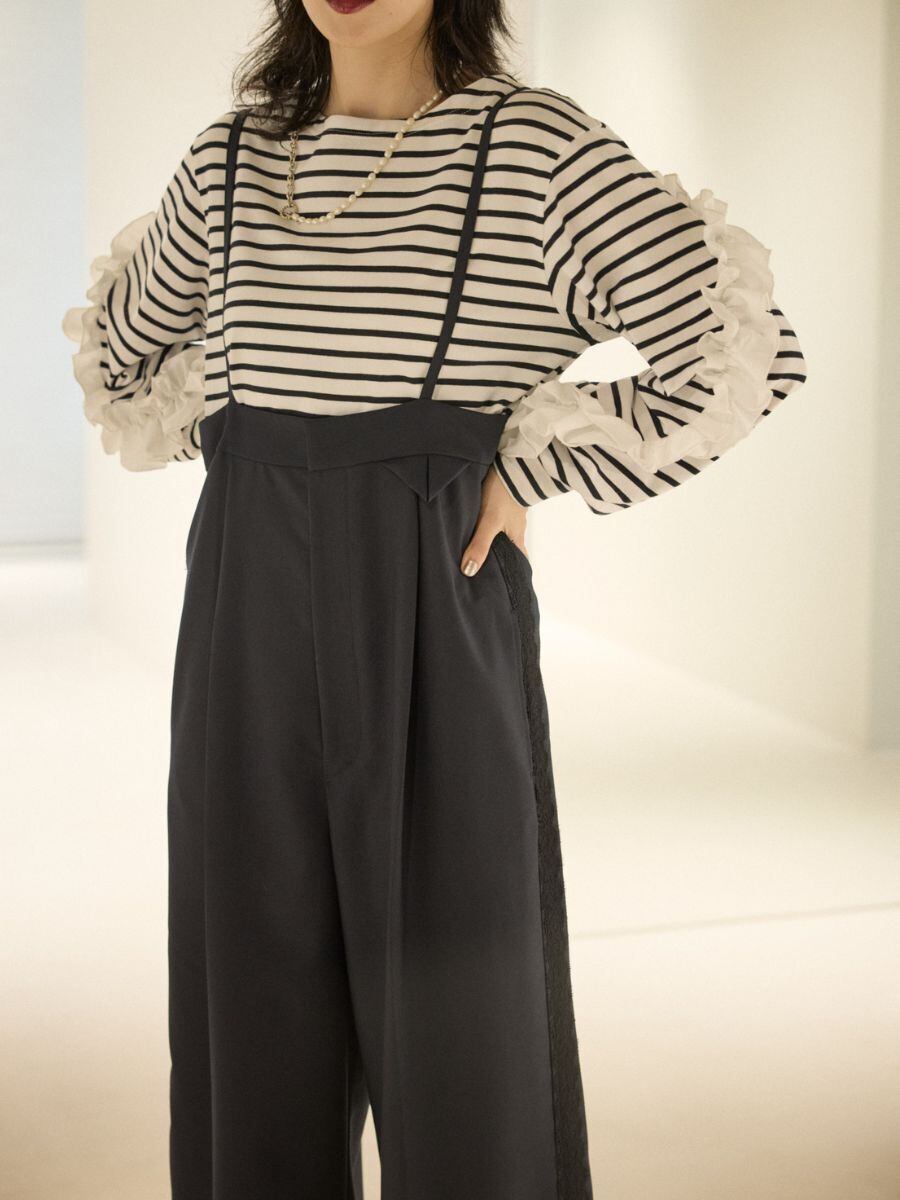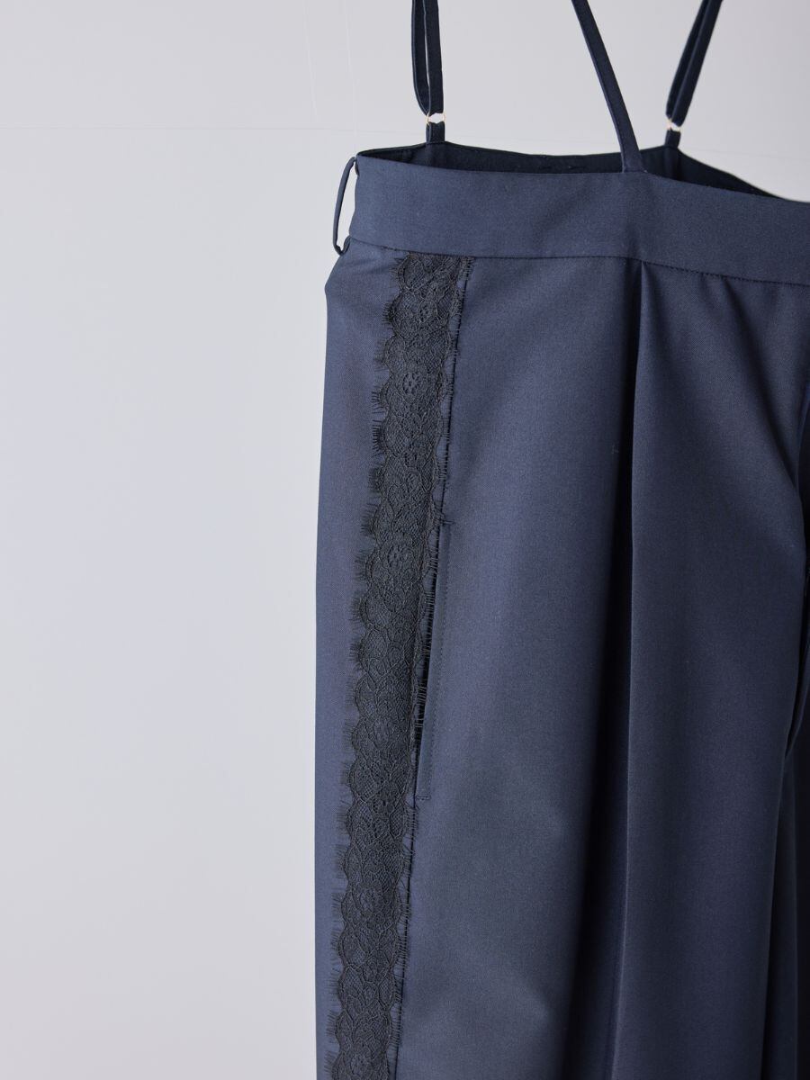 脇に入れたレースラインが、媚びない女らしさとモード感を。