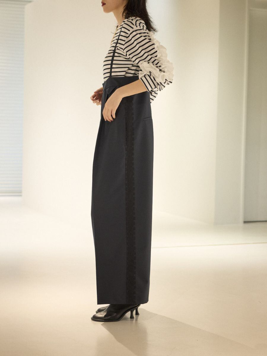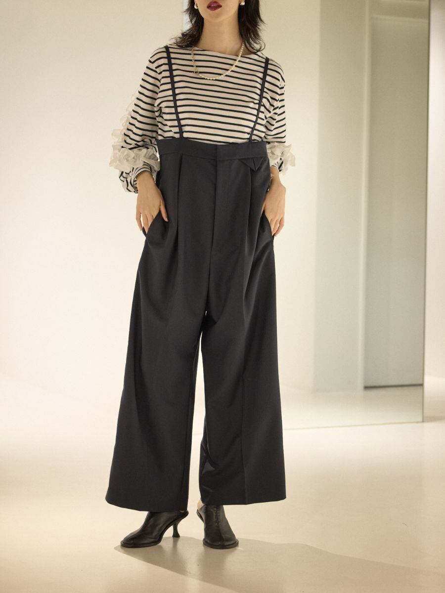ハイウエストの美しいシルエットで、脚をすらりと見せる大人のサロペット。
