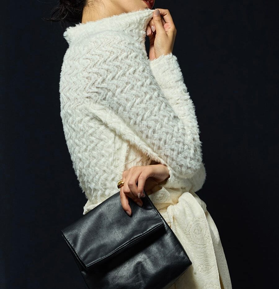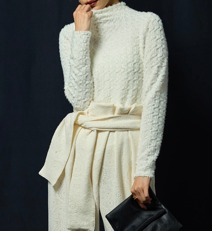 「ふんわりフェザーのような肌ざわり、着映えもレイヤードも叶う、大人の抜け感インナー」さりげない透け感と柔らかな毛足が魅力の、ファーのような表情豊かなミュールのカットソーインナーです。ぴったりしすぎない程よいフィット感で、一枚で着ても、ニットやジャケットの下に重ねても映える主役級トップスです。詰まりすぎない絶妙なネックラインのタートルで、顔まわりもスッキリ。肌に優しく着心地も軽やかなので、いつでも手に取りたくなる、大人の秋冬のワードローブに加えたい一着に仕上がりました。