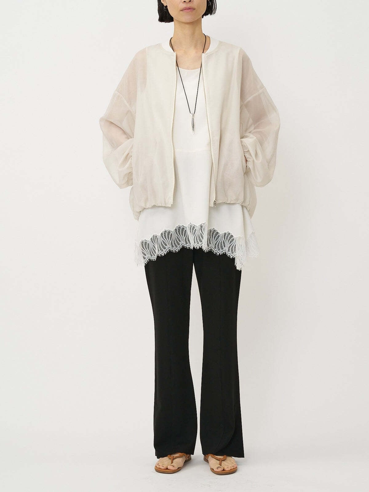 レースアイテムをコーディネートにプラスするだけで、ぐっと今年らしさが出るので是非様々なコーディネートに取り入れて頂きたい一枚です。