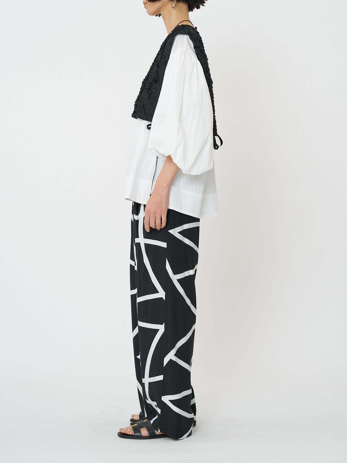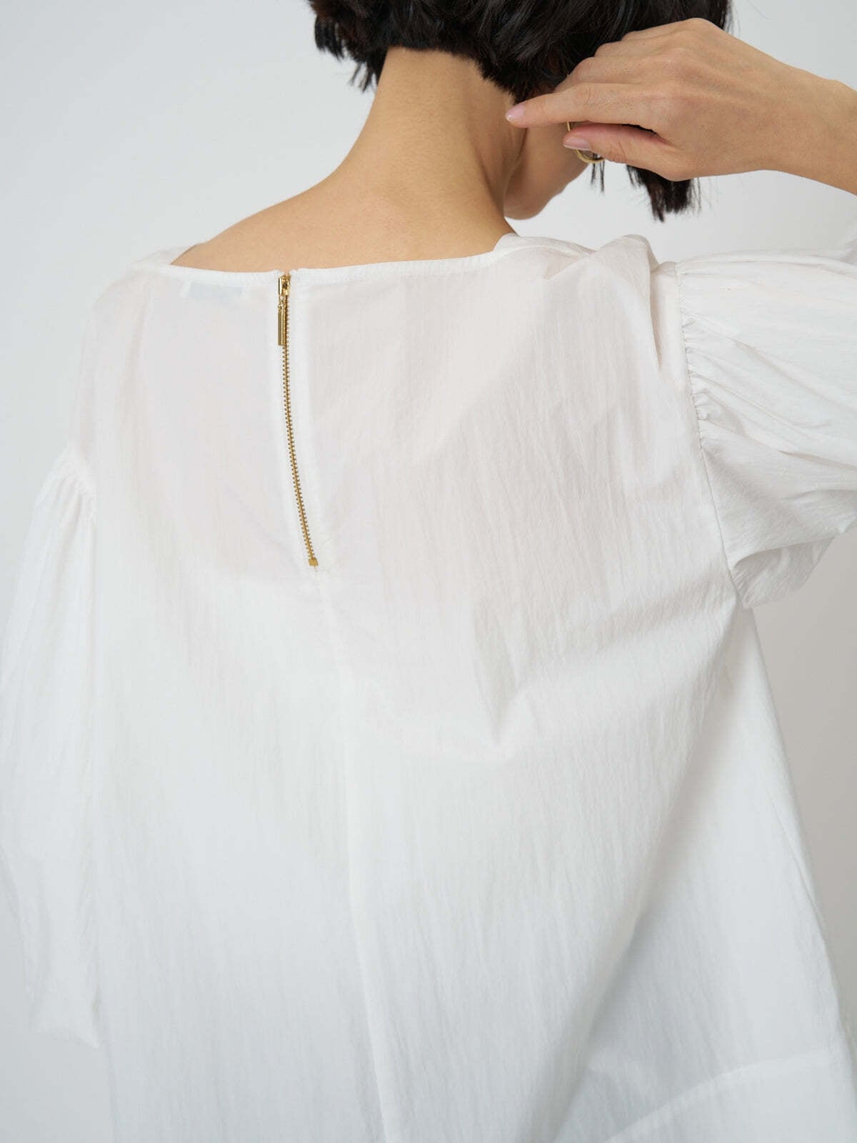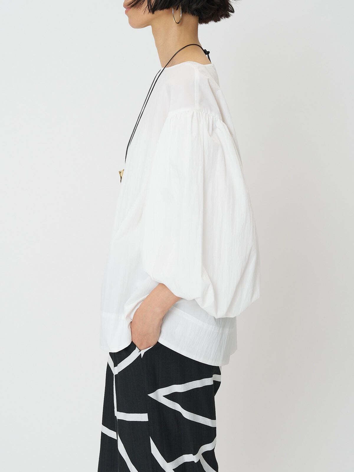 潔いスラッシュドネックと、ボリュームたっぷりのバルーンスリーブとのコントラストがキャッチーな、1枚で映えるプルオーバーです。