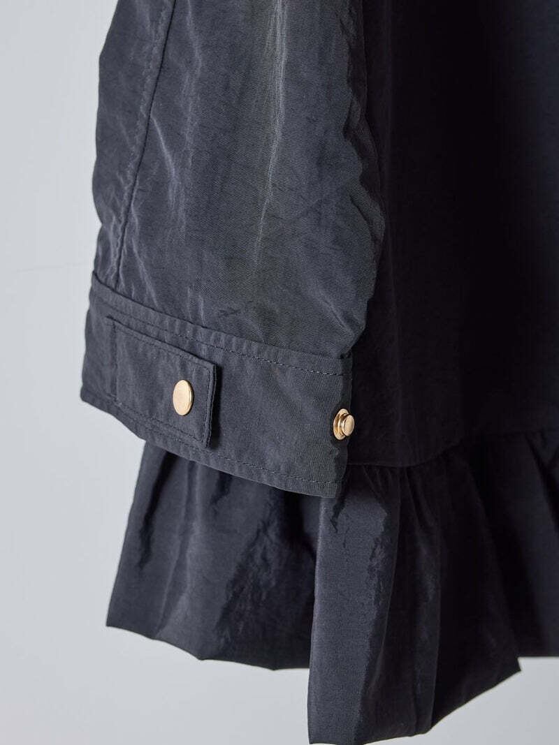 軽やかなナイロン素材を贅沢に使用し、裾にはたっぷりとフリルをあしらって大人の可愛さをプラス。
