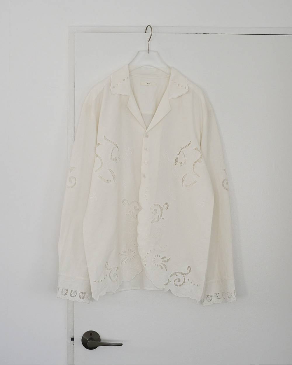 カットワーク刺繍が目を惹くインド製の開襟シャツ。袖と前身に大きく刺繍柄を入れ、これだけでコーディネートに華を添えます。スカラップ刺繍で仕上げた襟と裾もポイント。インド製ならではの繊細なディテールが、袖を通すだけで気分を高めてくれる一枚。オーバーなサイズでラフに仕上げ、こなれた抜け感を演出。シンプルなボトムとのコーディネートはもちろん、バイカーパンツを合わせたモードな着こなしや、春夏の羽織りとしてもおすすめの一着。