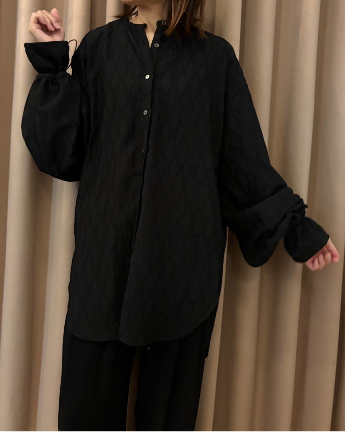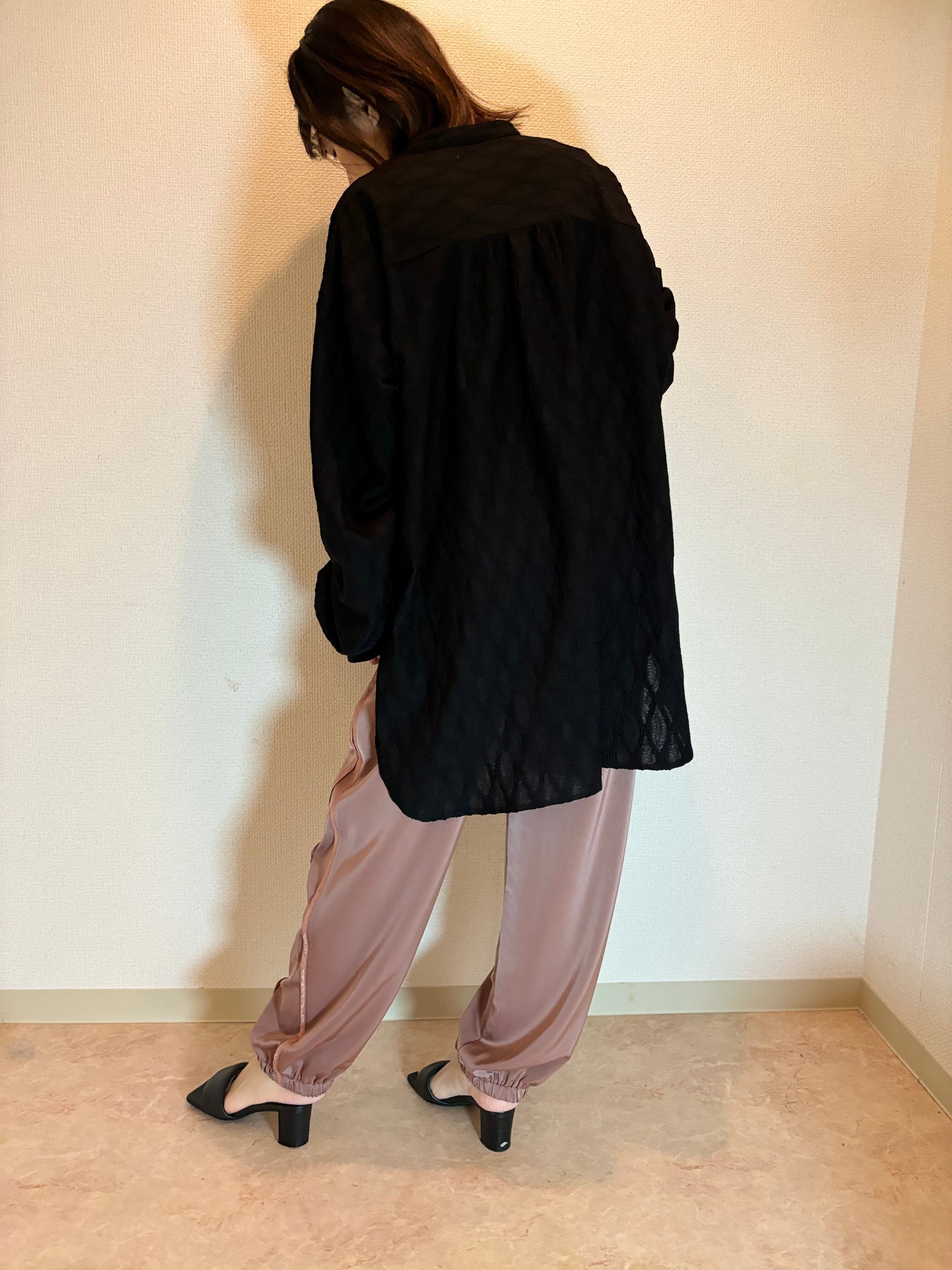 このCYANのジャガードブラウスは、独特の生地感と美しいデザインが特徴です!肌触りの良いジャガード生地は、カジュアルからフォーマルまで幅広いシーンで活躍し、シンプルながらもおしゃれなスタイルを演出します。長めの着丈は、気になる腰回りをカバーしつつ、スタイリッシュなシルエットを保ってくれることでしょう。