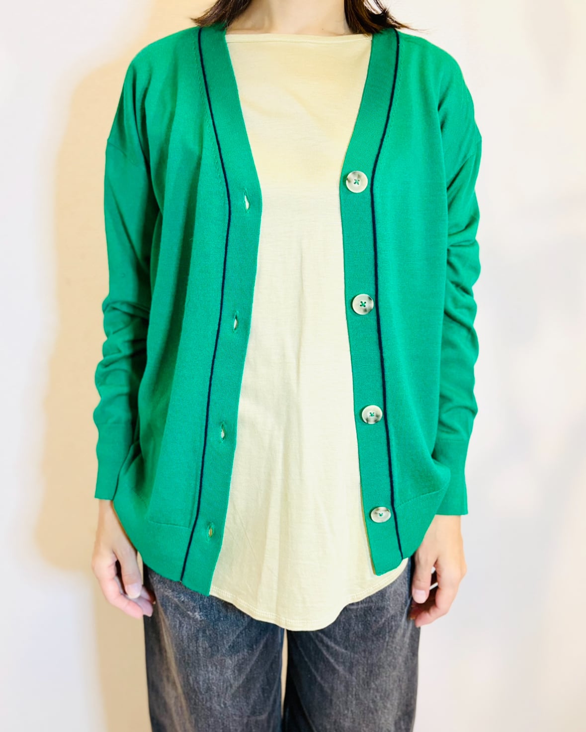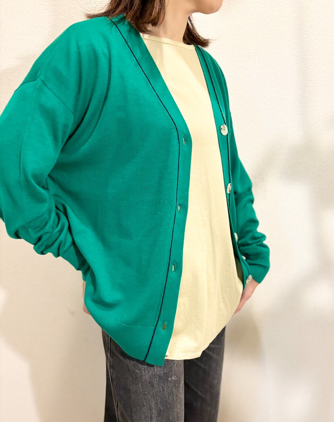 インナーにはTシャツやタートルネックを合わせることで、さまざまなスタイルを楽しむことができます。着回しの利くこのカーディガンは、あなたのコーディネートに洗練された印象と自信をプラスしてくれることでしょう⭐️