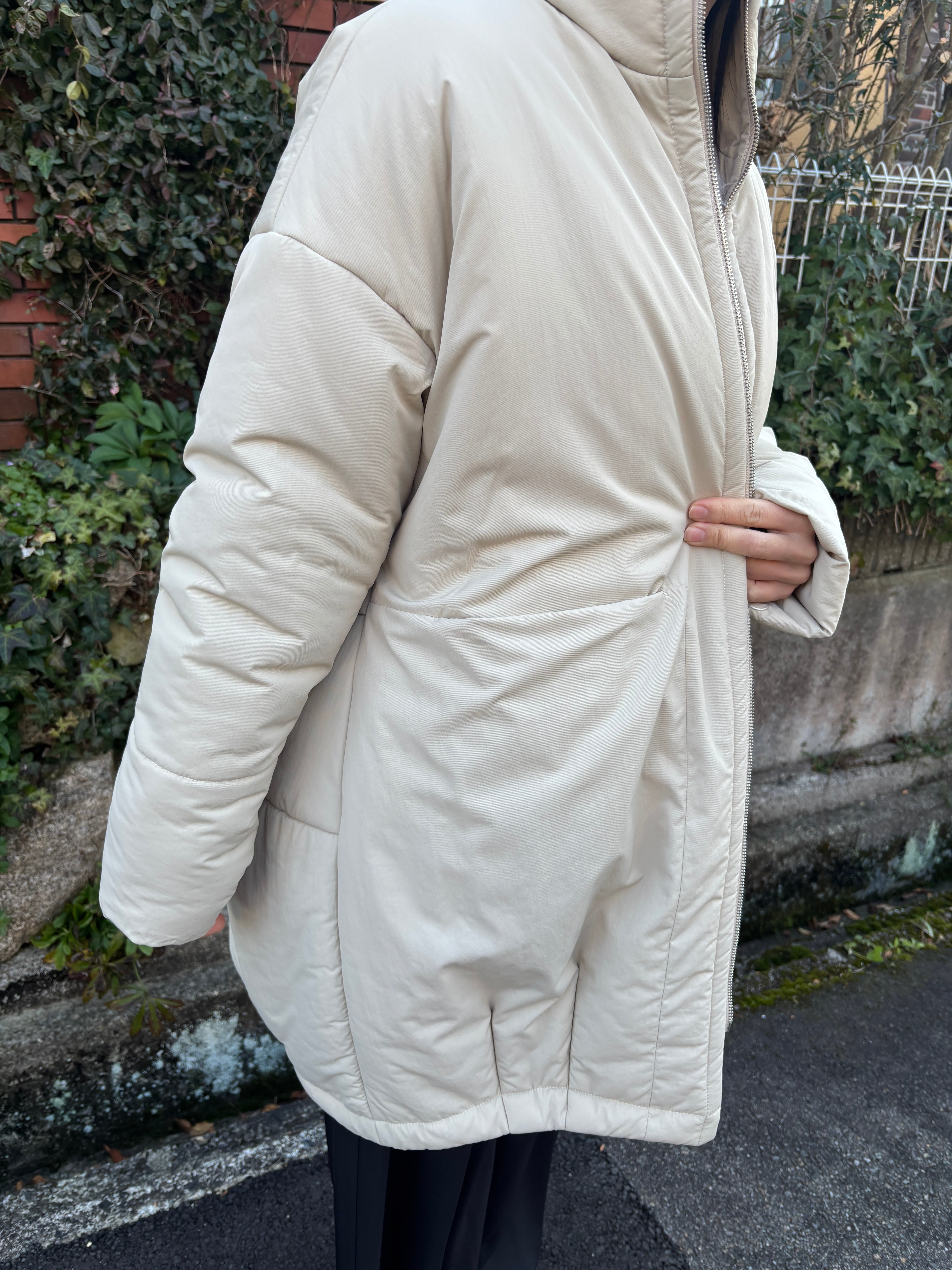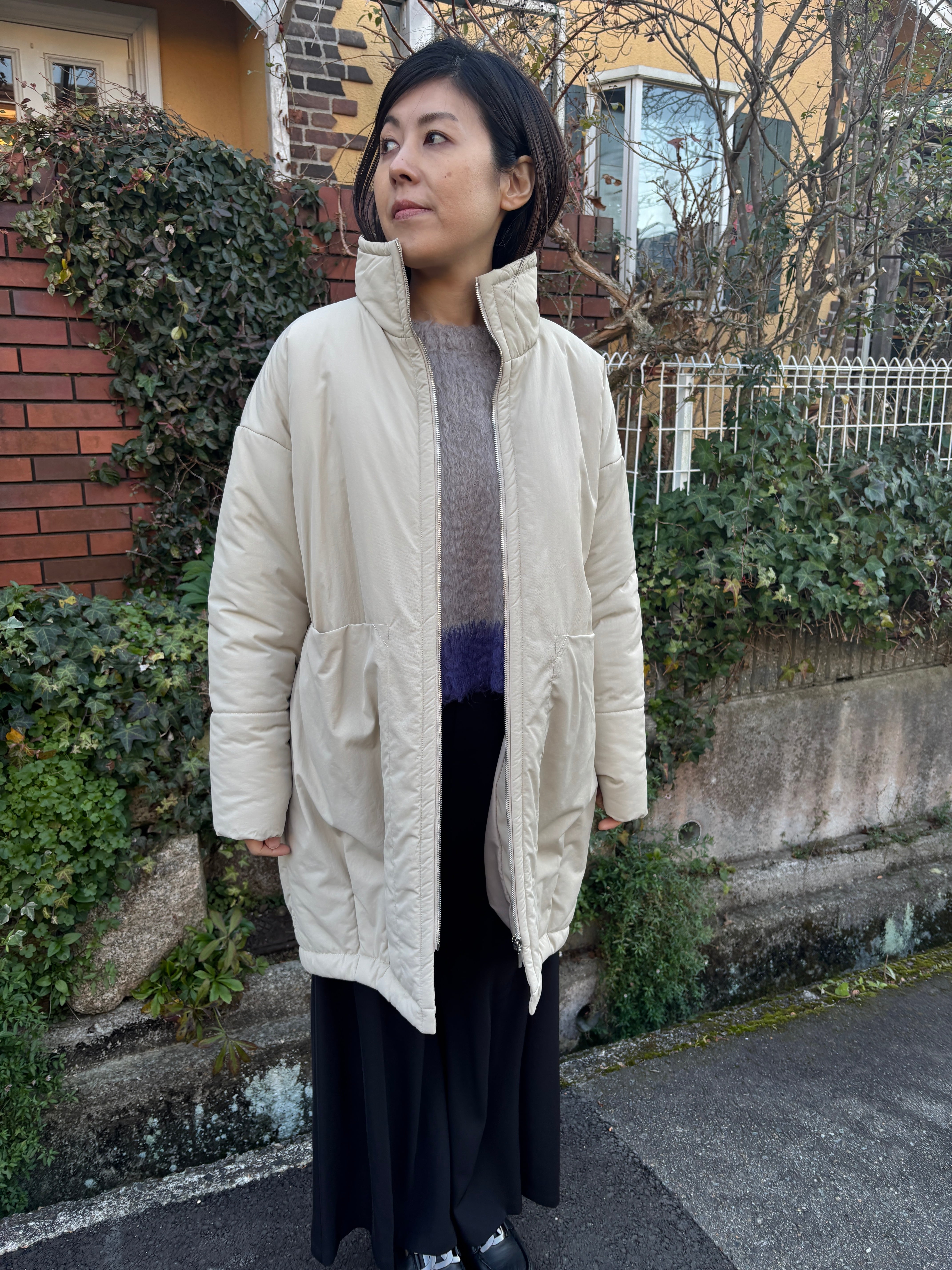 心地よい素材感とスタイリッシュなデザインを実現したCYANのハイネックパデットコクーンコート