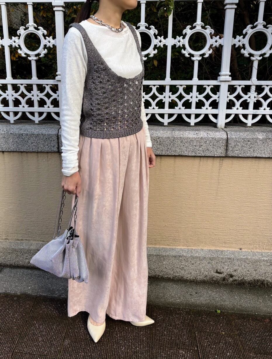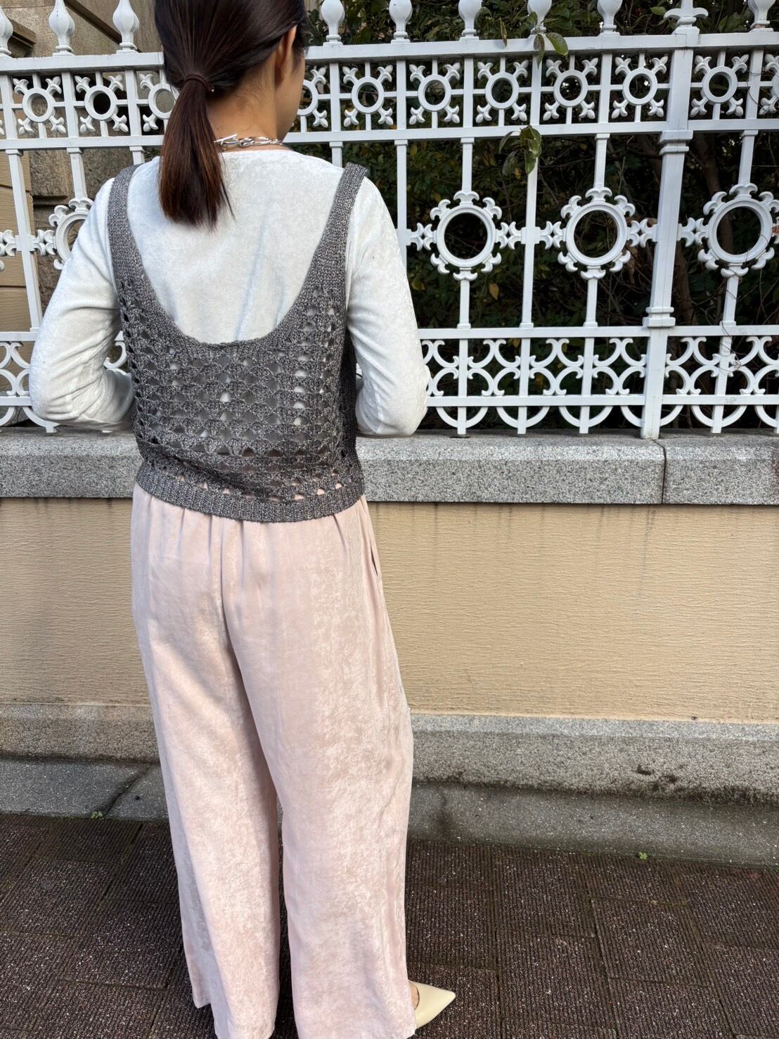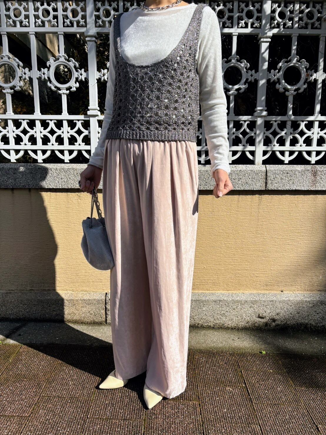 心地よい素材感と華やかなデザインのグリッターニットビスチェ